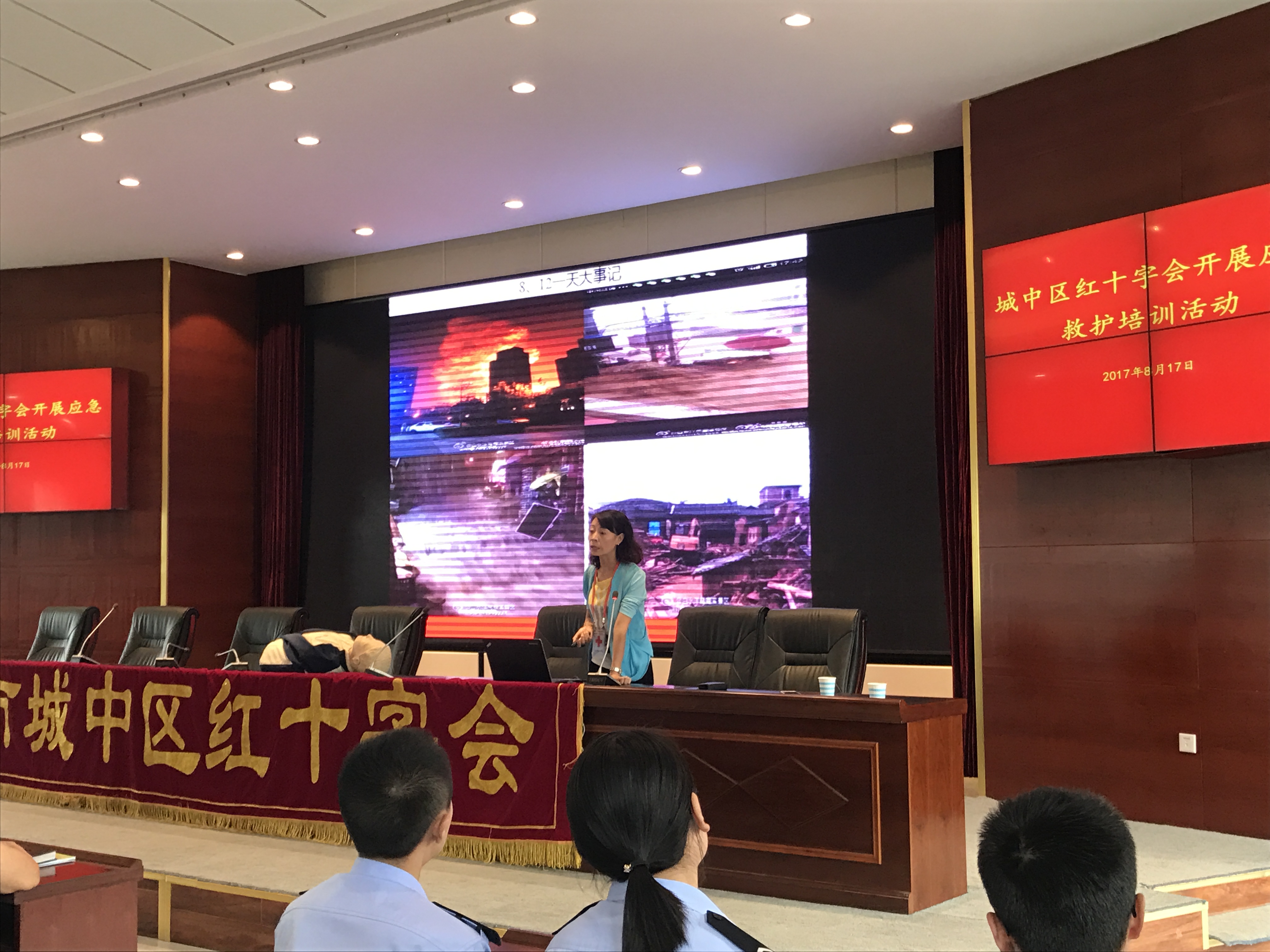 为进一步增强24小时平安在线执法干警的防灾避险及自救互救能力,保护人民群众及干警自身的生命安全,8月17日上午,城中区红十字会在区委区政府及省、市红十字会的大力支持下,组织24小时平安在线执法干警开展了第二期“应急救护进机关”活动,特别邀请了青海省红十字会韩玉英老师讲授应急救护技能。