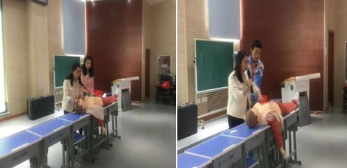 最后,王老师讲授了红十字运动的基本知识、拨打120电话的注意事项,同时结合生活实际讲解了青少年常见的意外伤害如溺水、触电、烧烫伤等意外发生时的家庭急救方法及救治注意事项,重点讲授了心肺复苏术并且现场模拟急救情景,邀请孩子上台亲自感受、亲身操作,加强青少年的应急救护意识,提高青少年的自救互救能力。