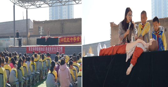 秋季是呼吸道传染病的高发季节,为做好学校秋季传染病防控工作,提高师生安全防范意识和应急救护技能,倡导学生养成良好的卫生习惯,10月27日上午,城中区红十字会联合城中区健康教育所在谢家寨小学开展了应急救护培训和秋季传染病防控知识讲座,参与活动师生共计450余名。