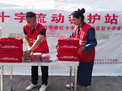 7月22日上午,万人瞩目的第十七届环青海湖公路自行车赛第一赛段的比赛拉开帷幕,城中区红十字会为做好第一赛段的应急救护工作积极参与到此次赛事中,在南川东路烈士陵园门口设立了红十字流动救护服务站,切实做好外地游客、赛点观众及参赛选手的应急救护和基本医疗保障工作,为参赛选手保驾护航。