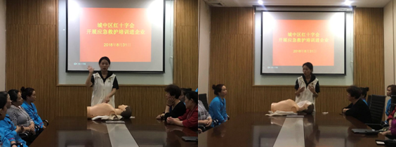 为进一步提升企业职工的自救互救能力,强化安全意识,减少意外伤害,提高企业整体安全防范能力,8月31日城中区红十字会走进那朵酒店开展了应急救护技能培训活动,来自该酒店行政、厨房、餐厅、安保、前台等部门的40余名员工和管理层工作人员参与了全程学习。