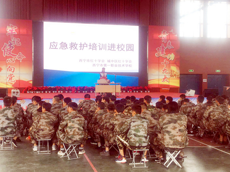 9月18日,城中区红十字会邀请省红十字会专业讲师开展了“应急救护培训进校园”活动,在西宁一职的体育馆里,身穿军训迷彩服的912名新生整齐入座,一场精彩的应急救护培训正在进行。“红十字会不分阶级、不分种族、不分贫富贵贱,只要需要帮助我们就会出现……”讲师细致地讲解了红十字会相关知识,使在场师生对“人道、博爱、奉献”的红十字会精神以及备灾、救灾、募捐、救助、救护培训等职责有了进一步认识。