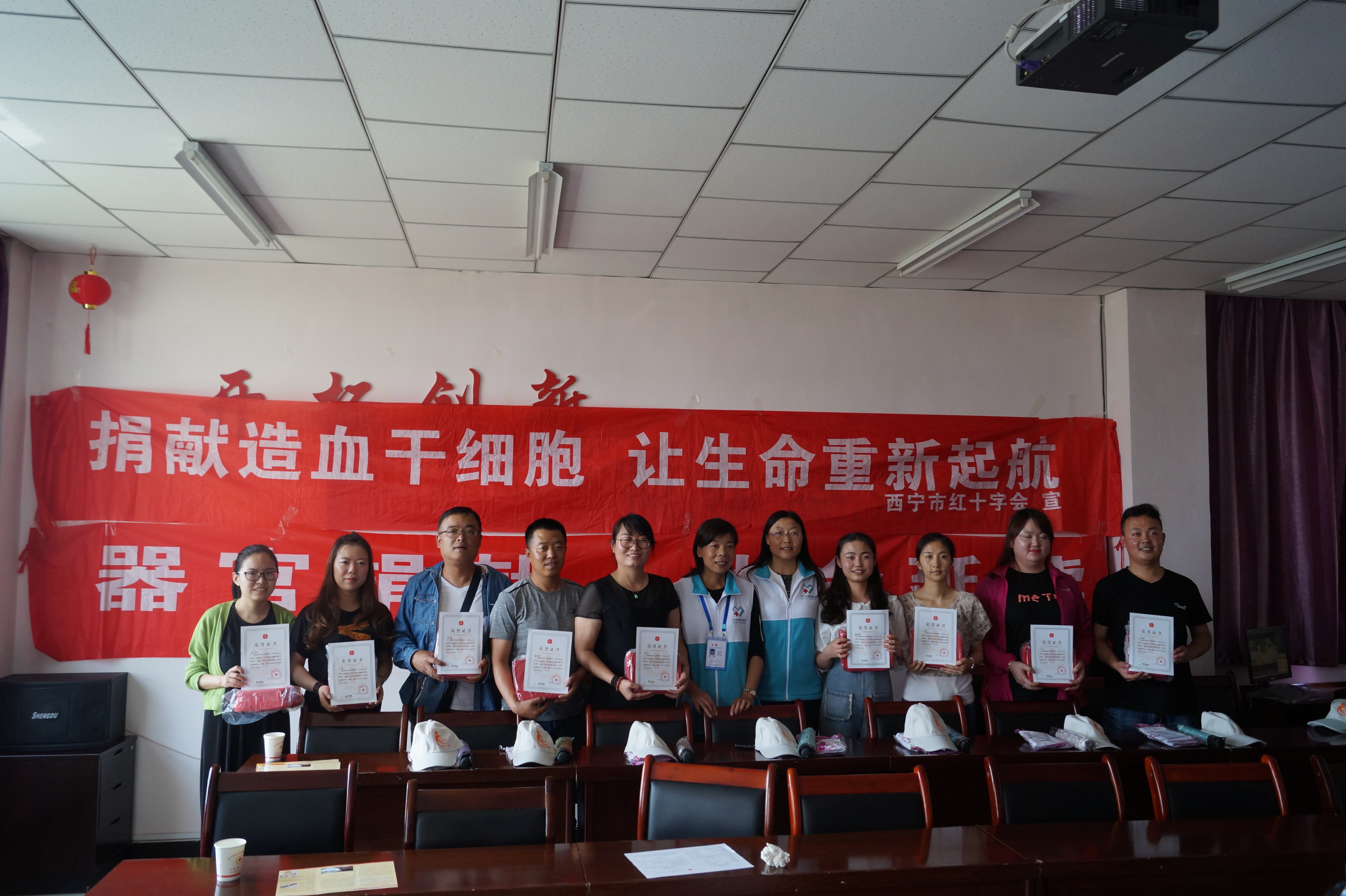 川东社区卫生服务中心三楼会议室内,自愿捐献造血干细胞的志愿者早早到达采集现场等候,认真观看捐献造血干细胞的公益宣传片和造血干细胞捐献流程科普宣传片。西宁市红十字会李会长用浅显易懂的语言讲解了捐献造血干细胞并不会对捐献者本身的健康造成损害和采集的具体流程、条件及重要意义,随后组织志愿者有序进行了填表、健康筛查、抽血、完成血样、发放荣誉证书的采集流程。参加采集的志愿者共计30人,其中大部分为医务工作者,成功采集血样22份,发放慰问品雨伞、毛巾和手推式扫把各30份。