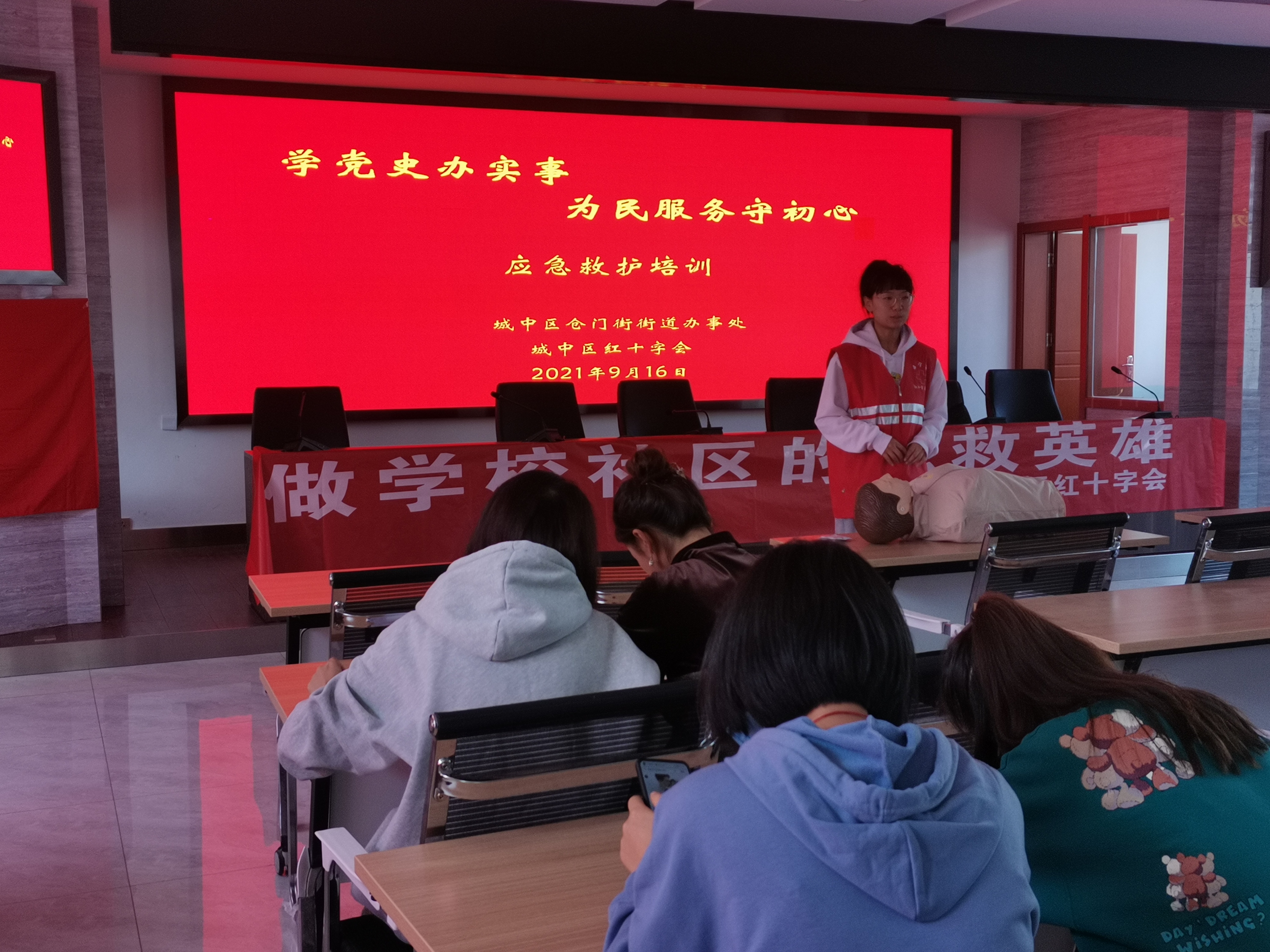 9月16日,城中区红十字会、区卫生健康局机关党支部将党史学习教育落到“我为群众办实事”的实际行动中,先后走进总寨镇人民政府和仓门街街道办事处开展“学党史办实事为民服务守初心”的活动,讲授党史知识,普及急救技能,送去慰问物资,共70余名群众参与活动。